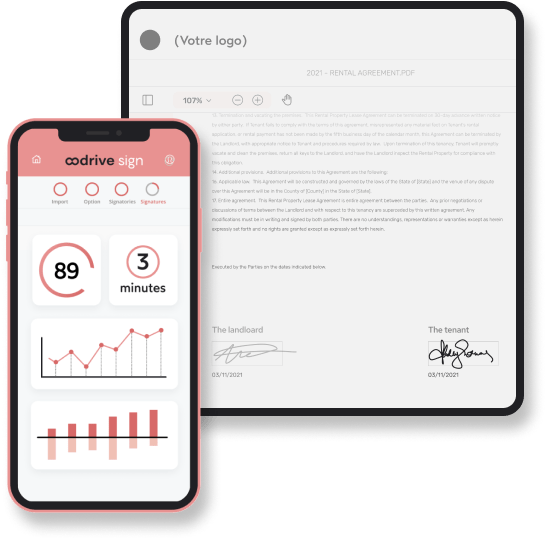 - Un espace de signatures configurable à votre image ou à celle de vos clients