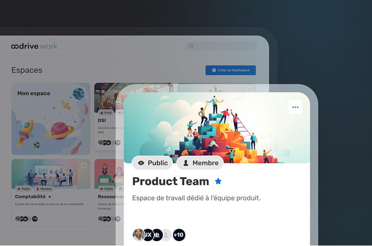 Oodrive Work permet aux collaborateurs d’accéder à des espaces d’équipe en fonction de leurs besoins. Ils peuvent rejoindre un espace public en libre accès ou demander à intégrer un projet spécifique. Pour les projets sensibles, il est également possible de créer des espaces privés, accessibles uniquement sur invitation.